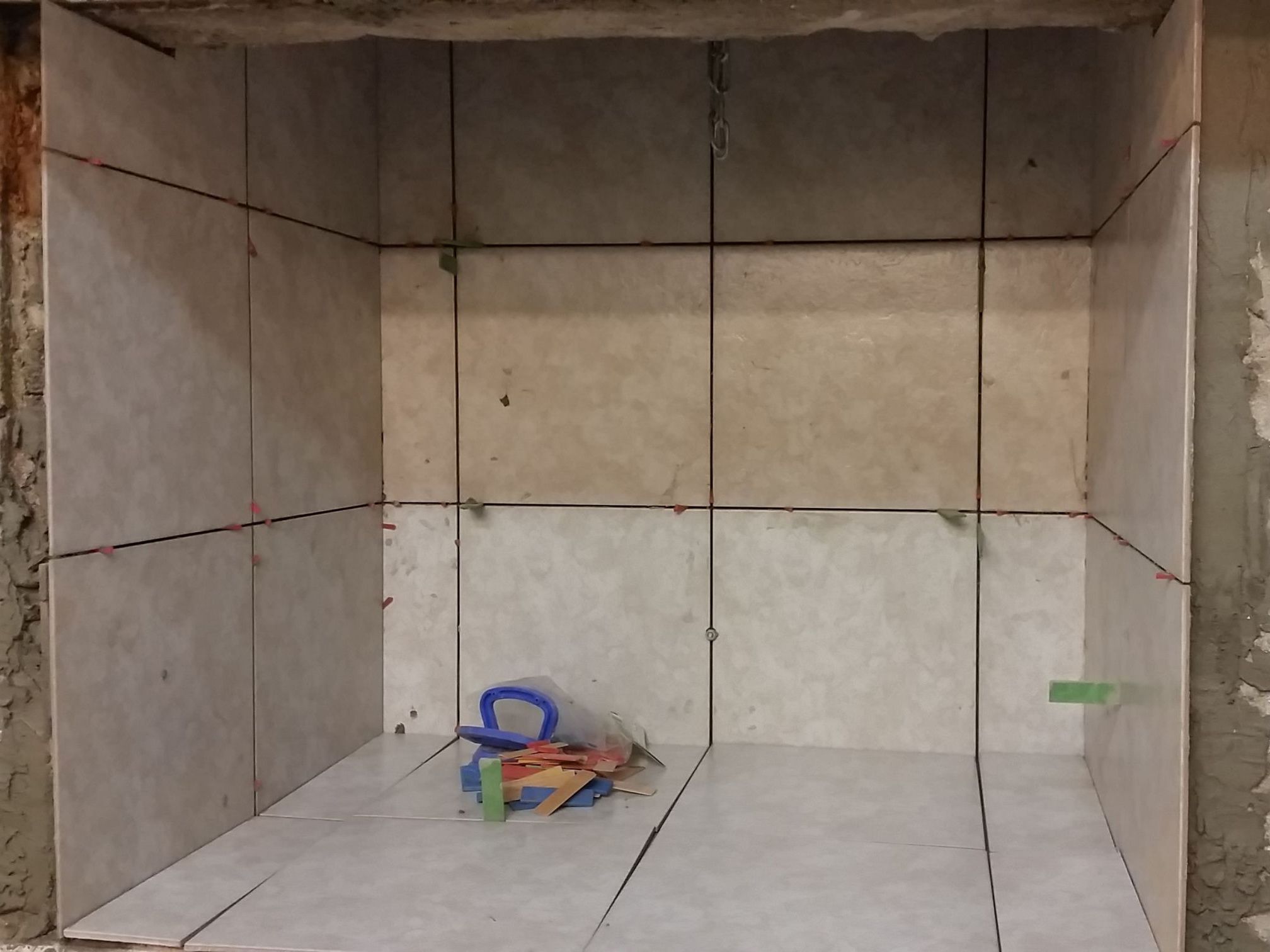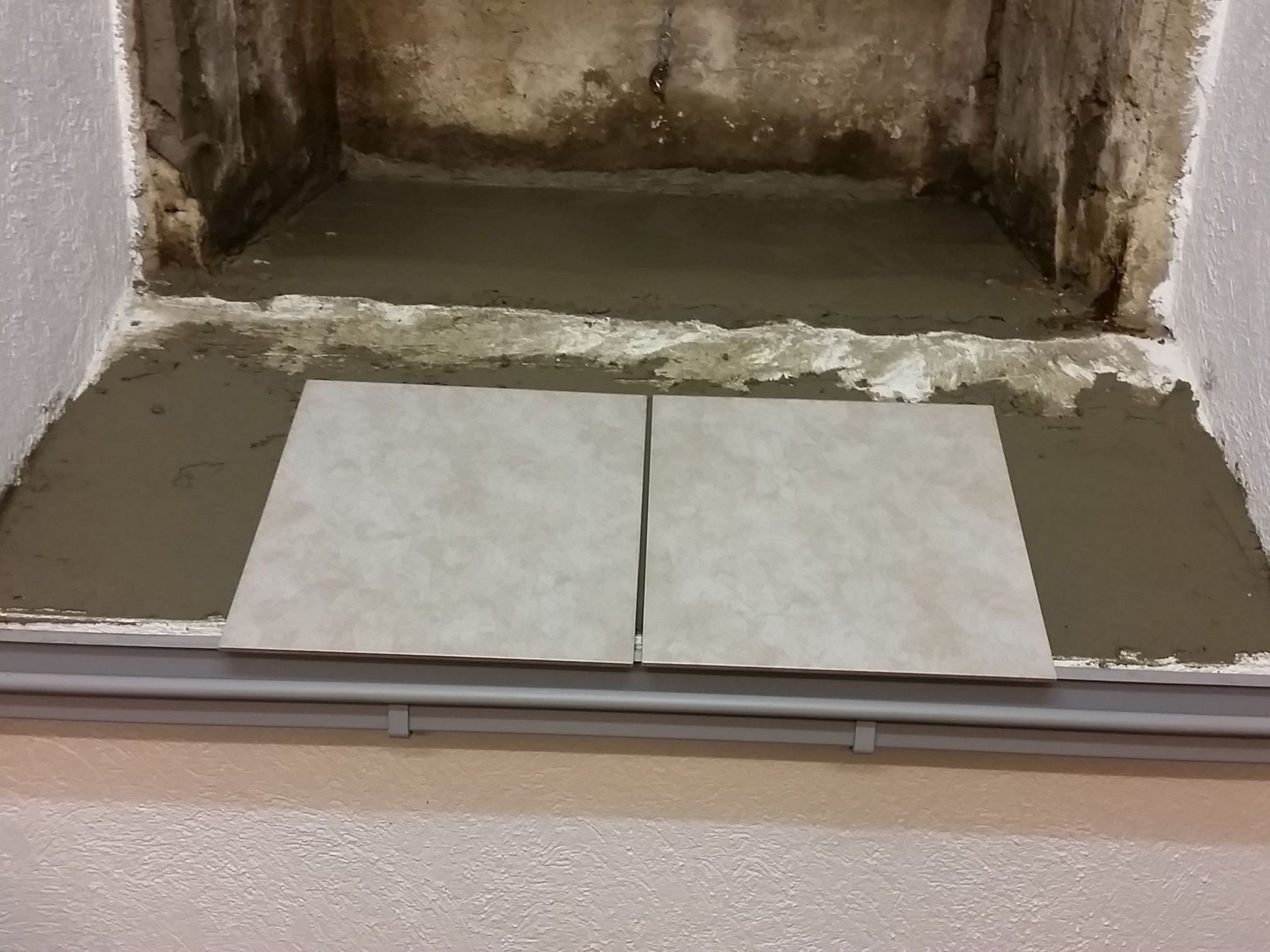 gluing the tiles in the hopper and assembly of the gutter