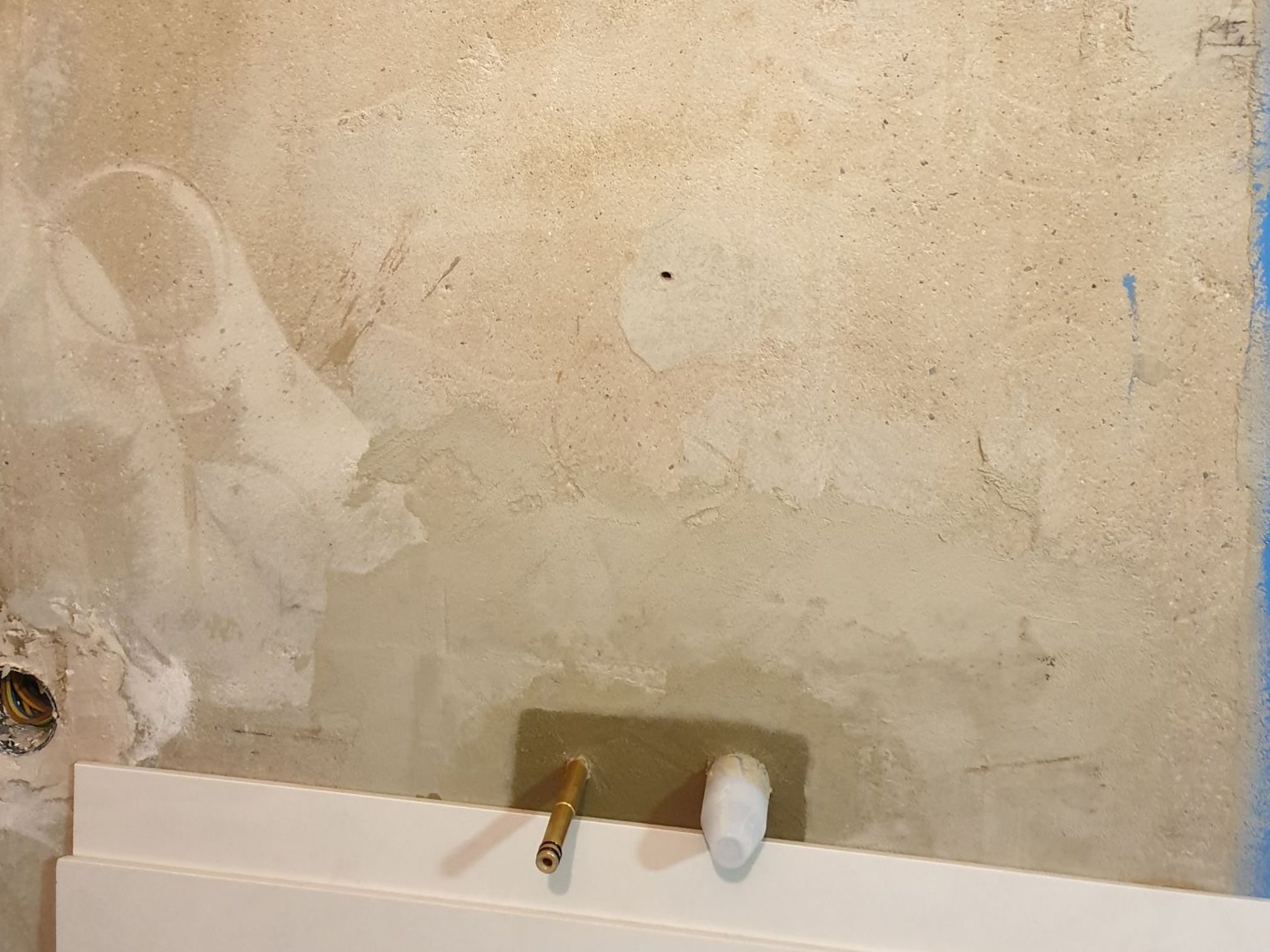 plaster mixers in the shower and washbasins