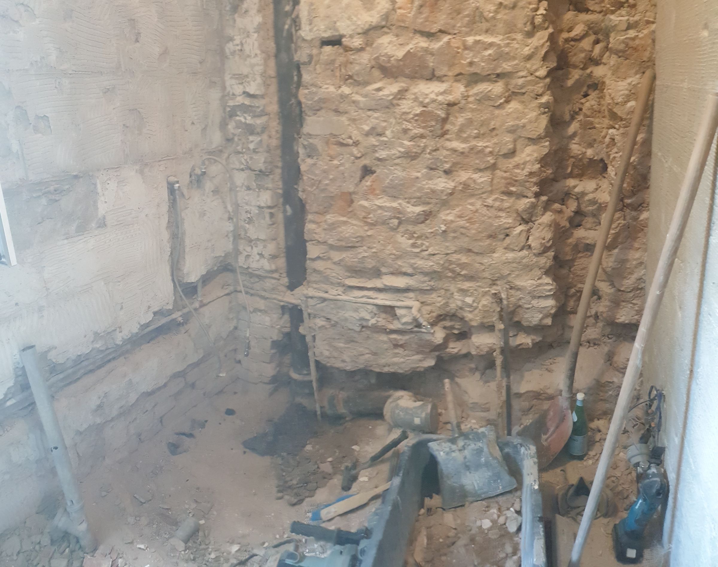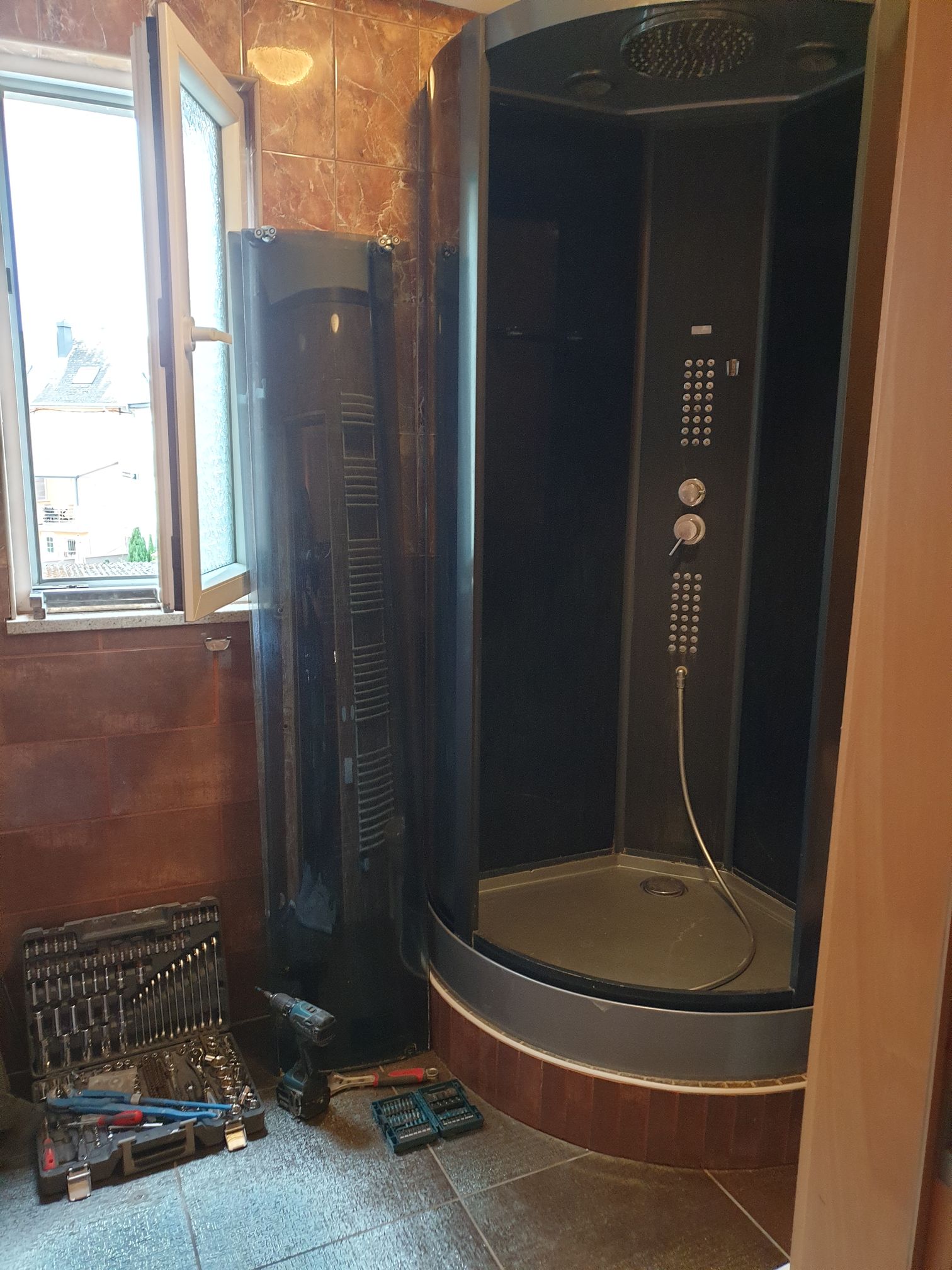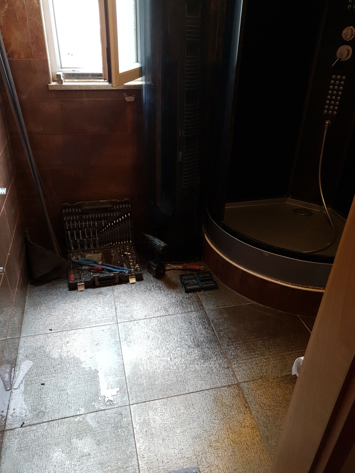 • Transformation of the installation for a shower with a linear drain