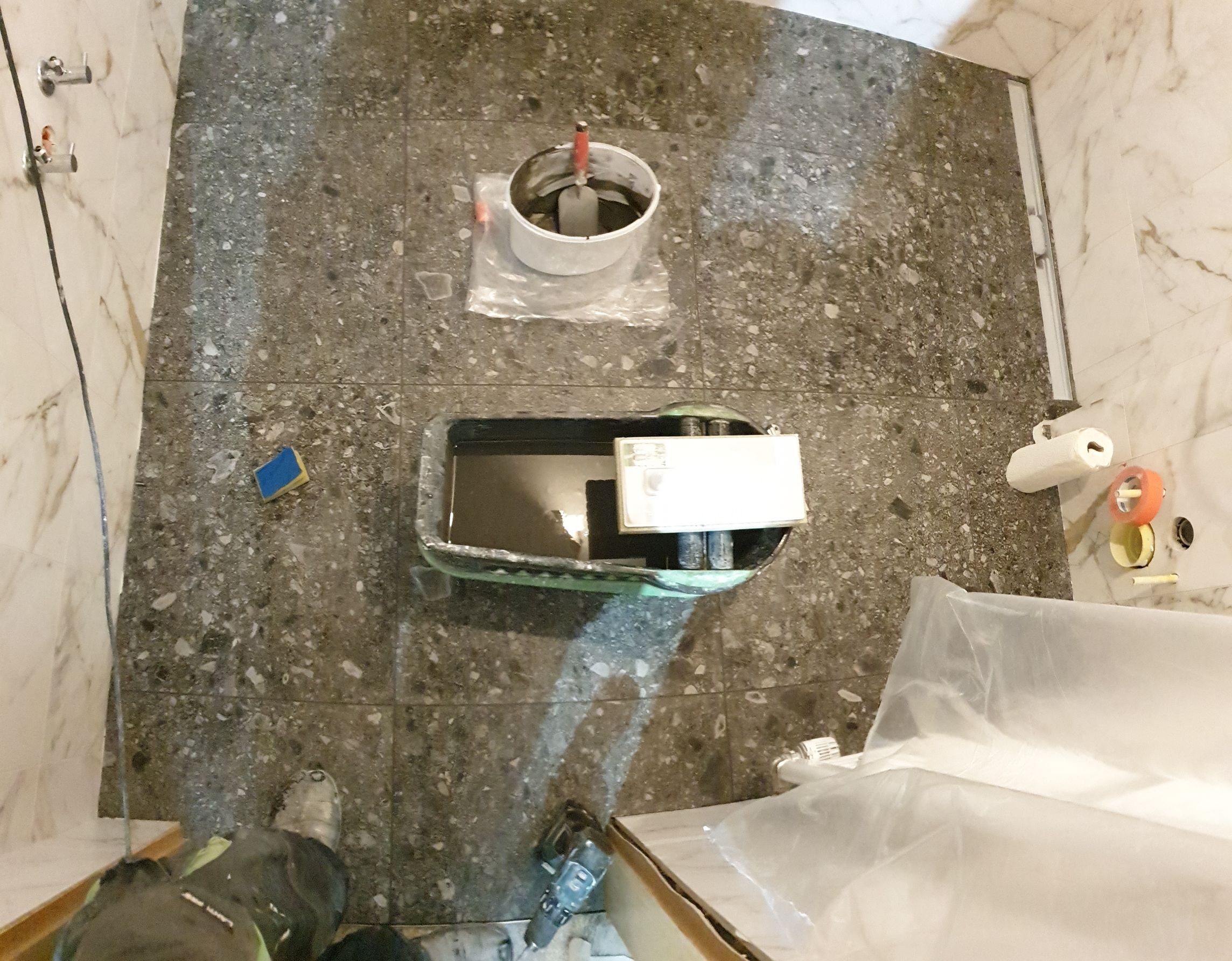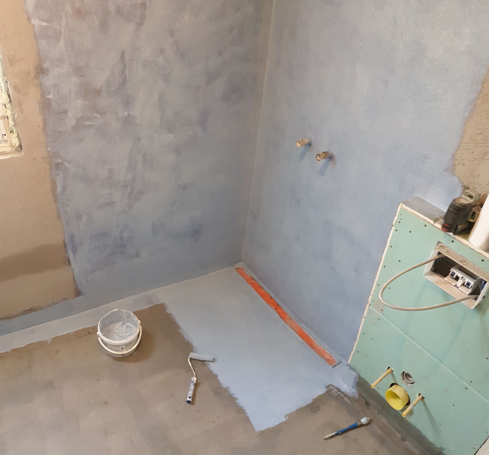 • Waterproofing the shower area and the entire floor