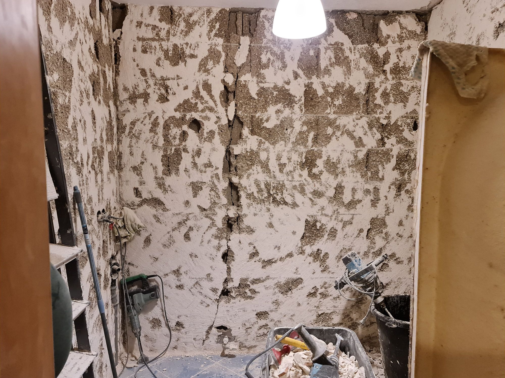 Removal of fixtures, tiles, plaster