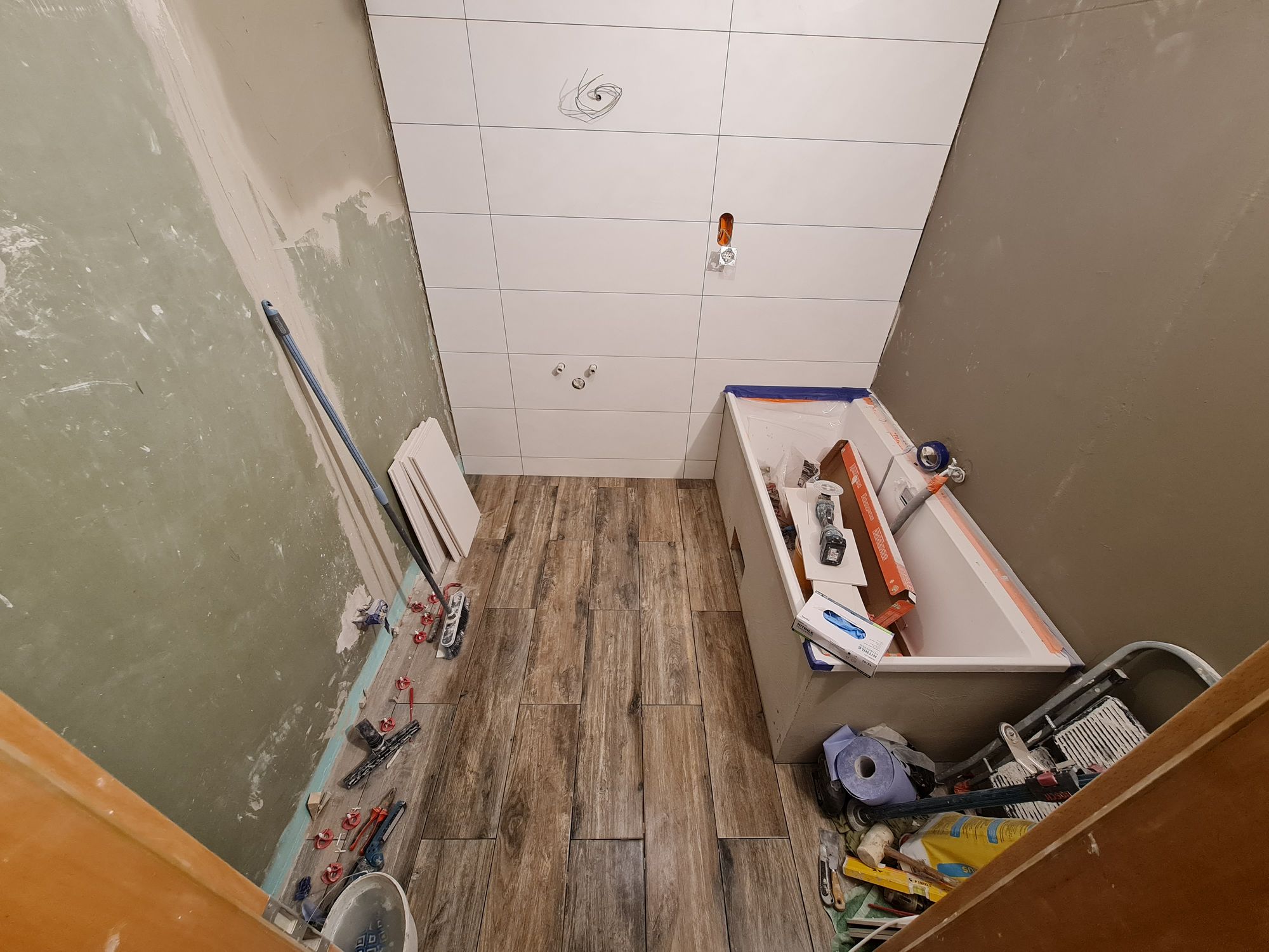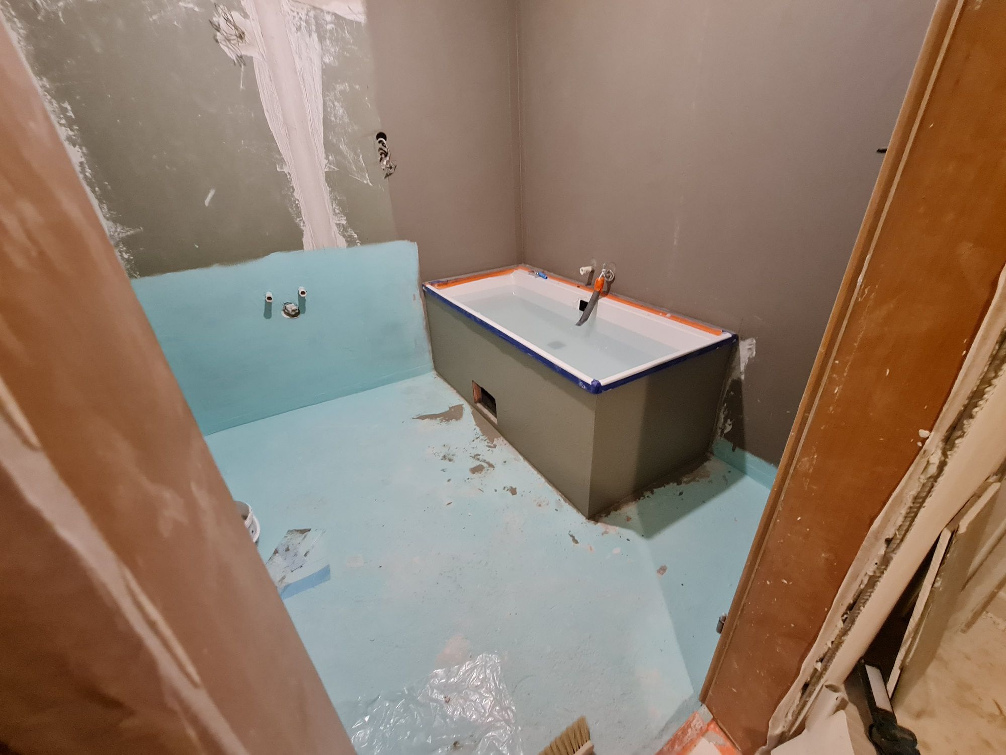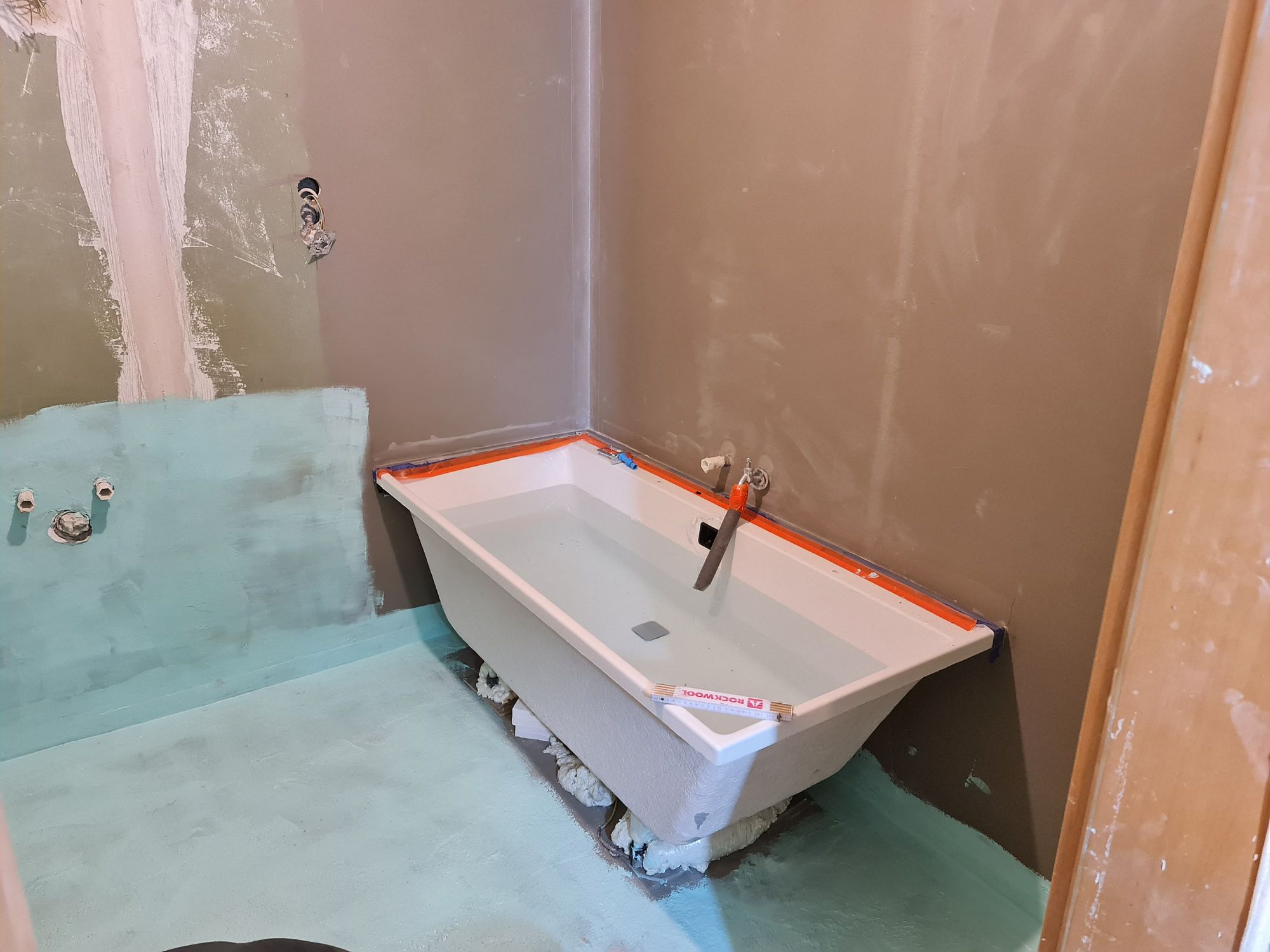 Installation of the bathtub and construction