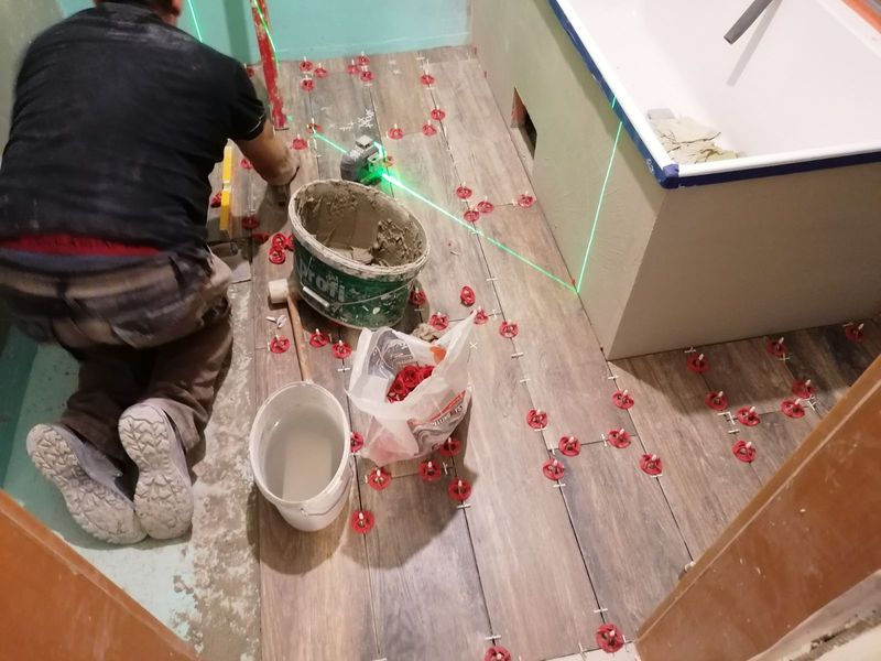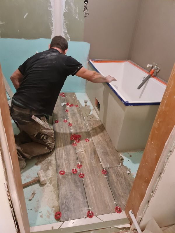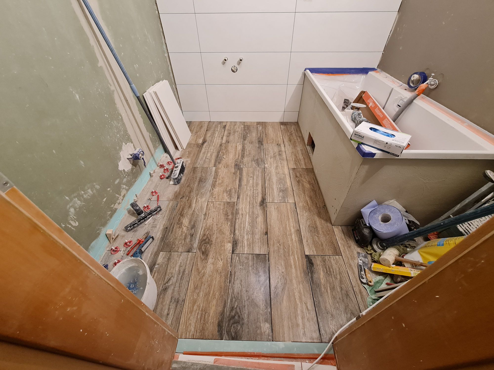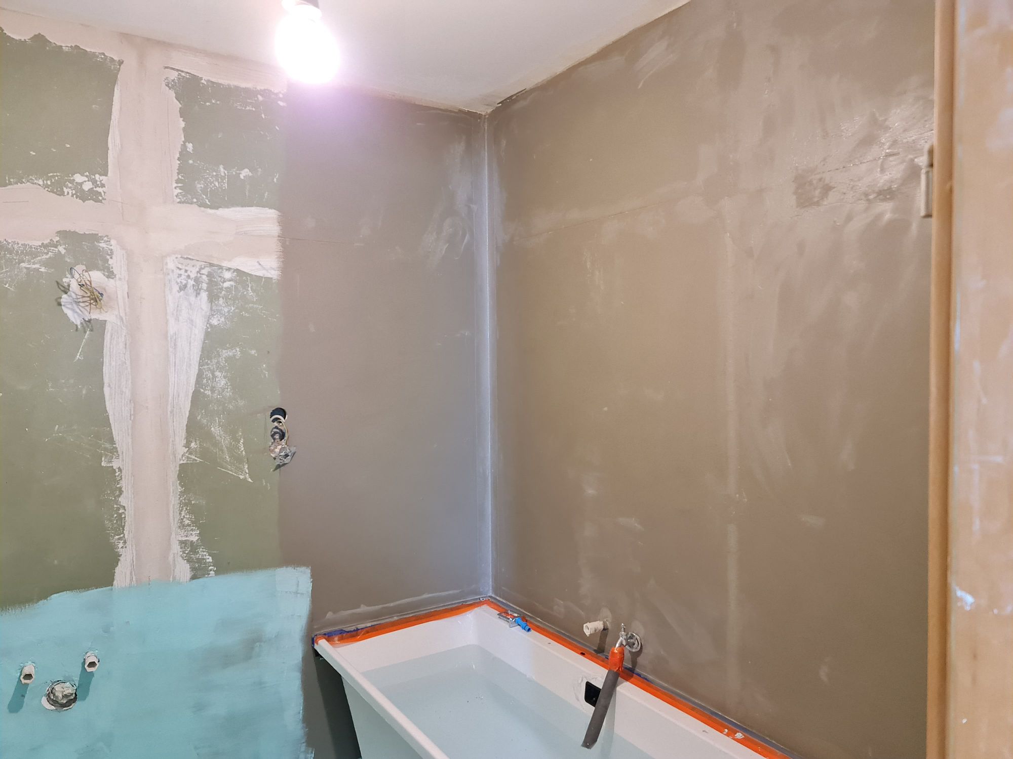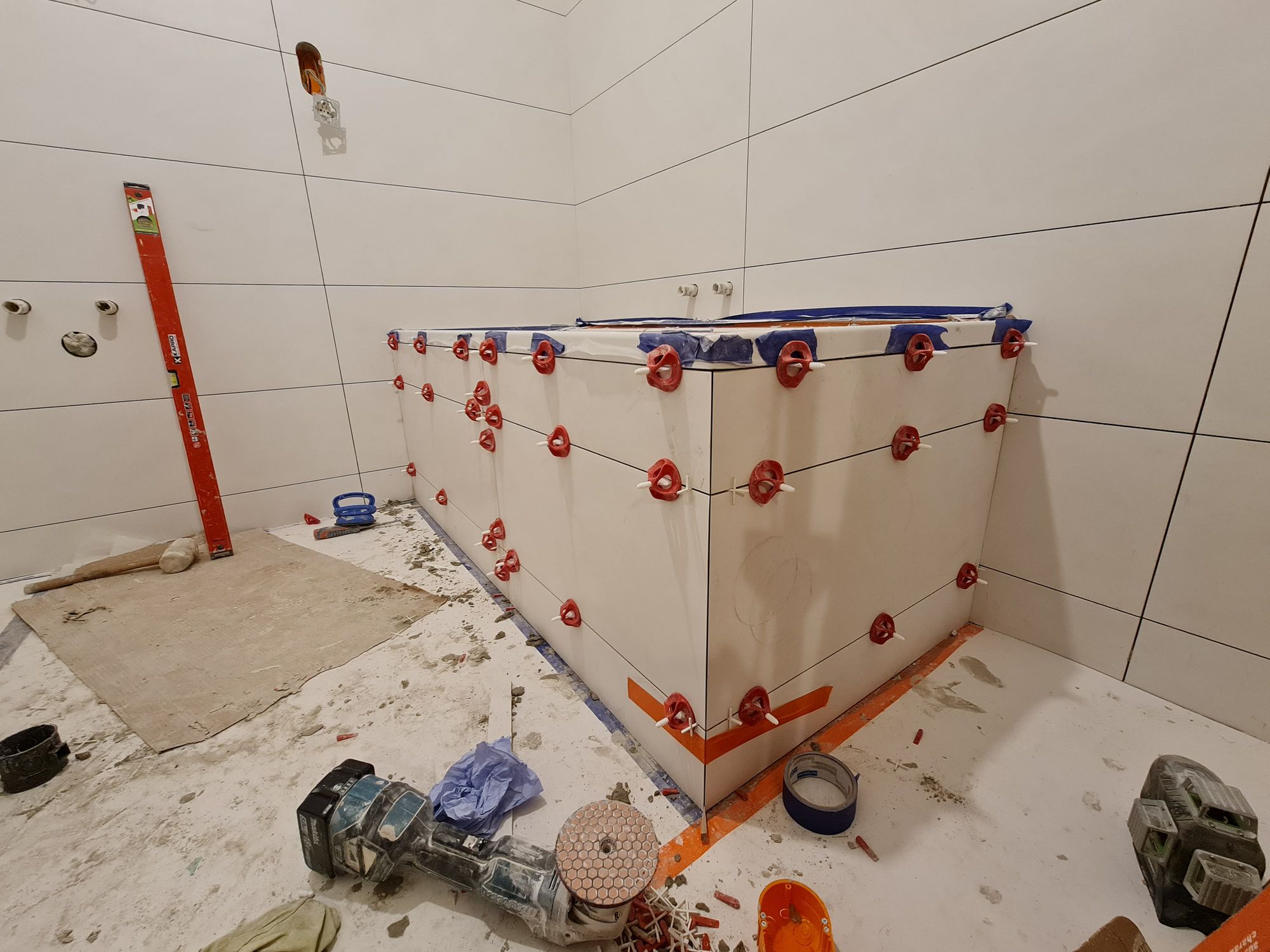 Installation of the bathtub and construction