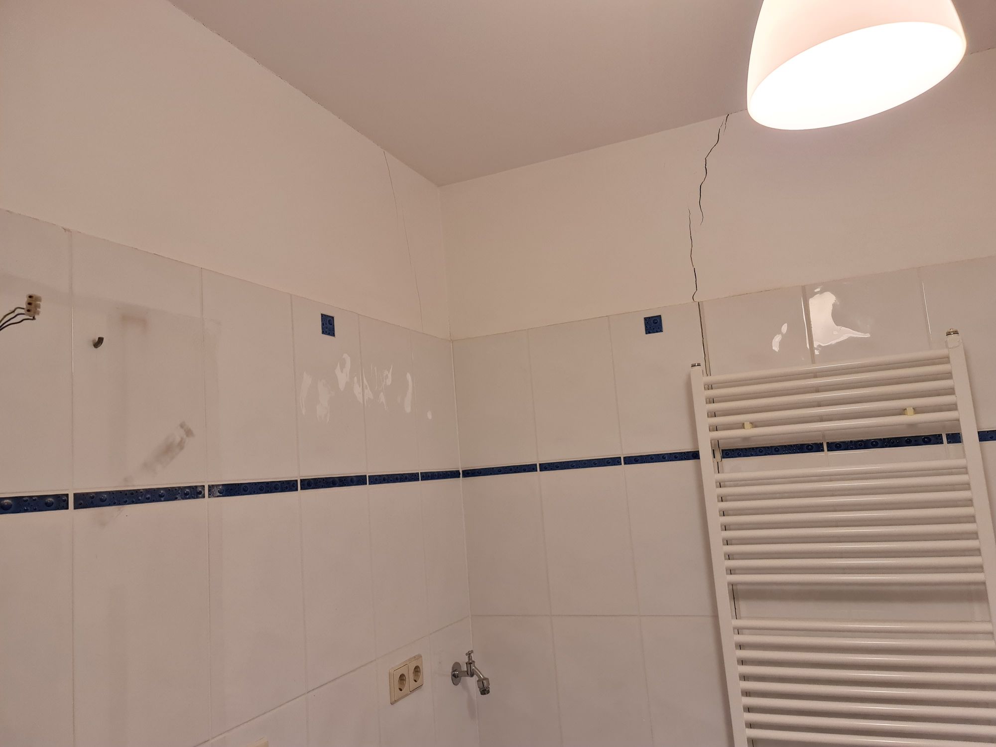 Bathroom with large cracks