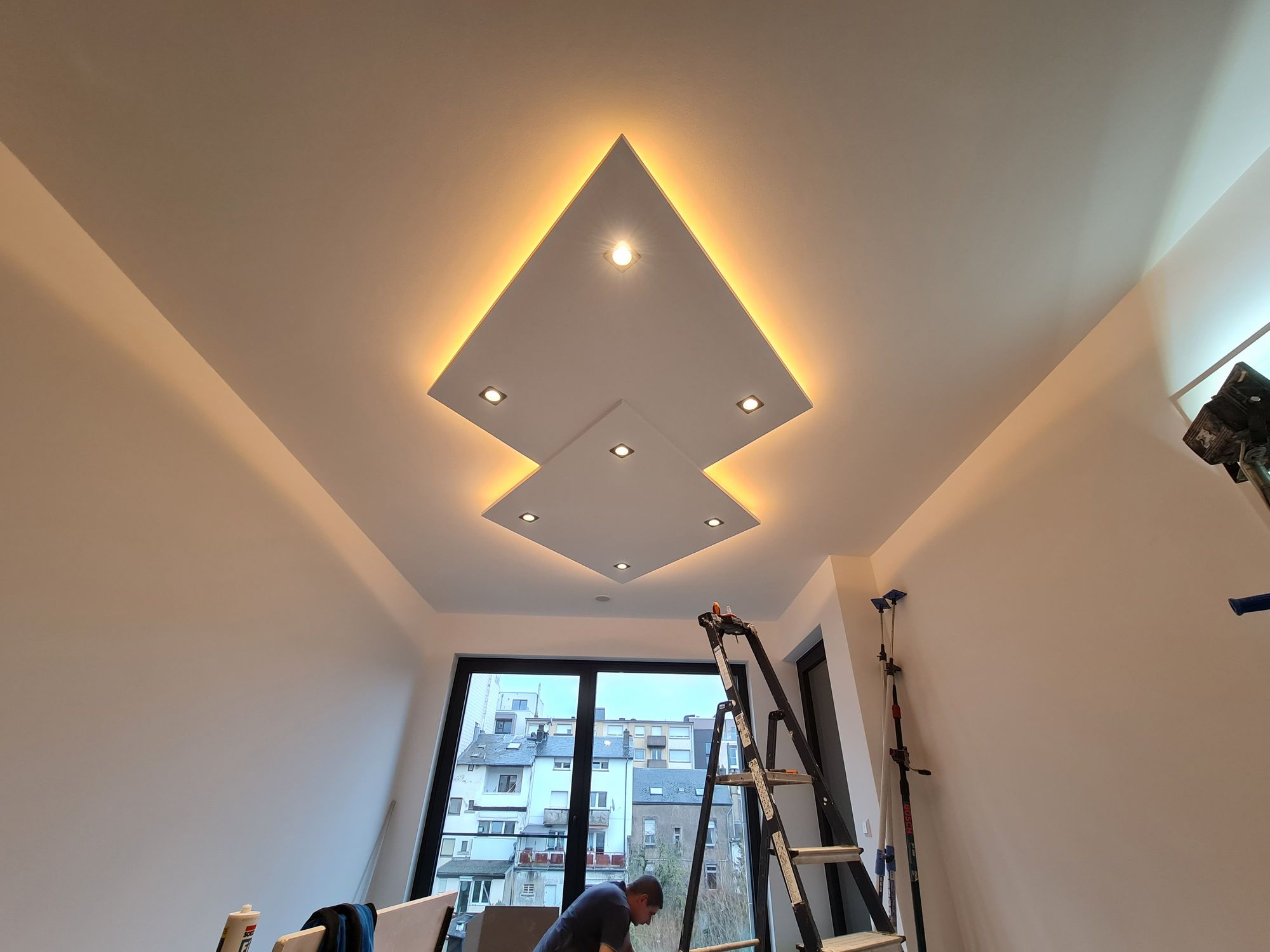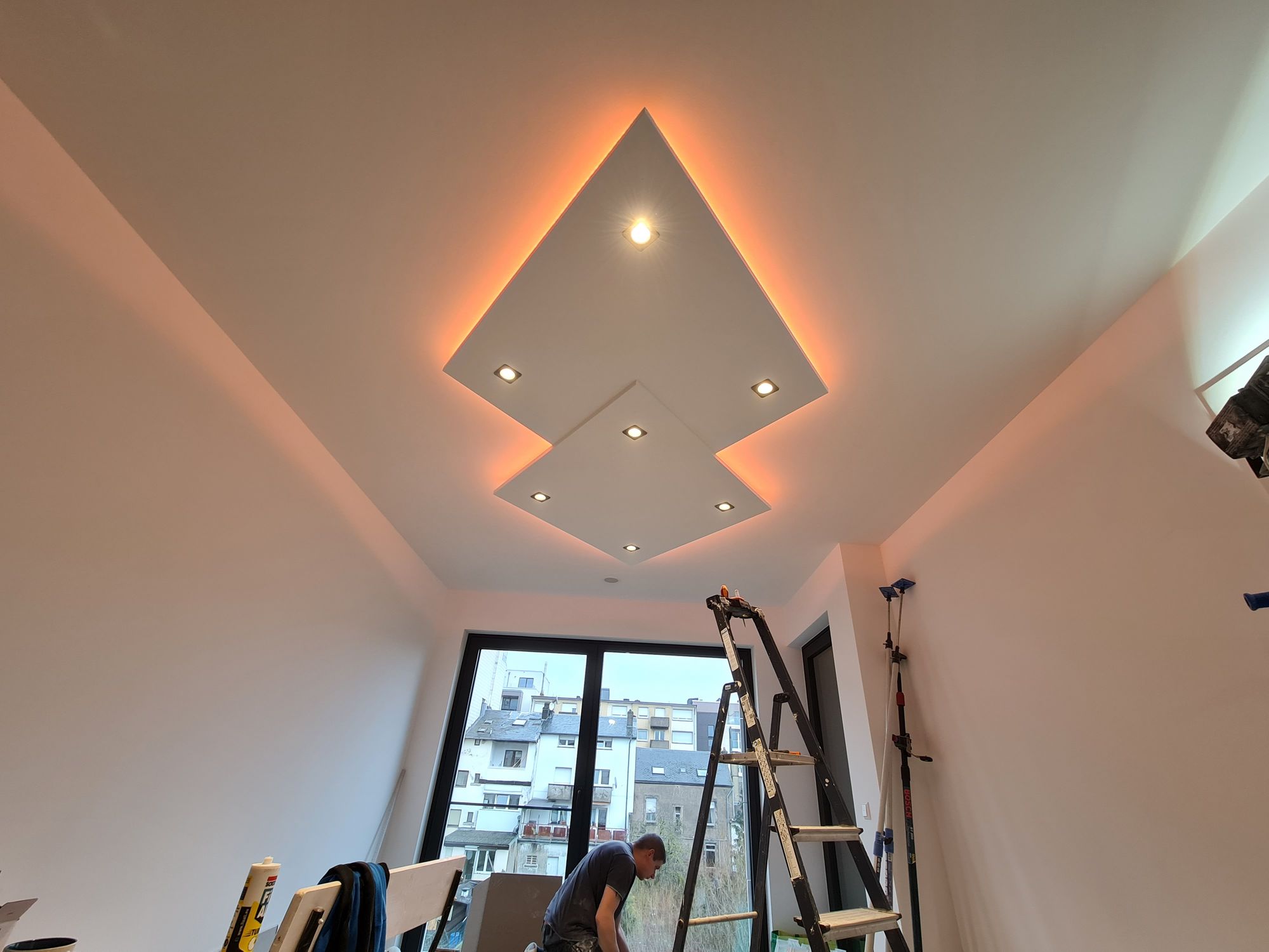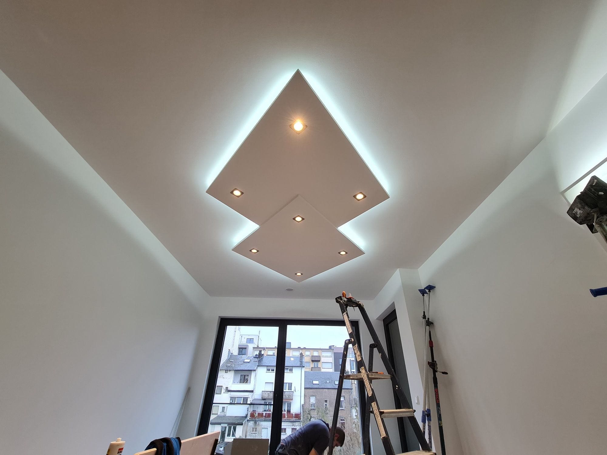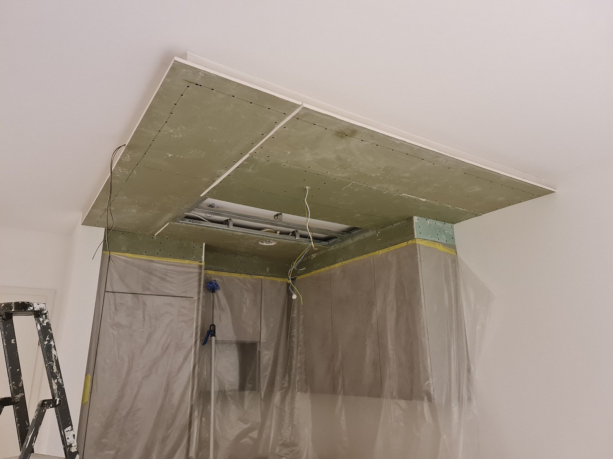 Installation of cardboard gypsum plastering + painting