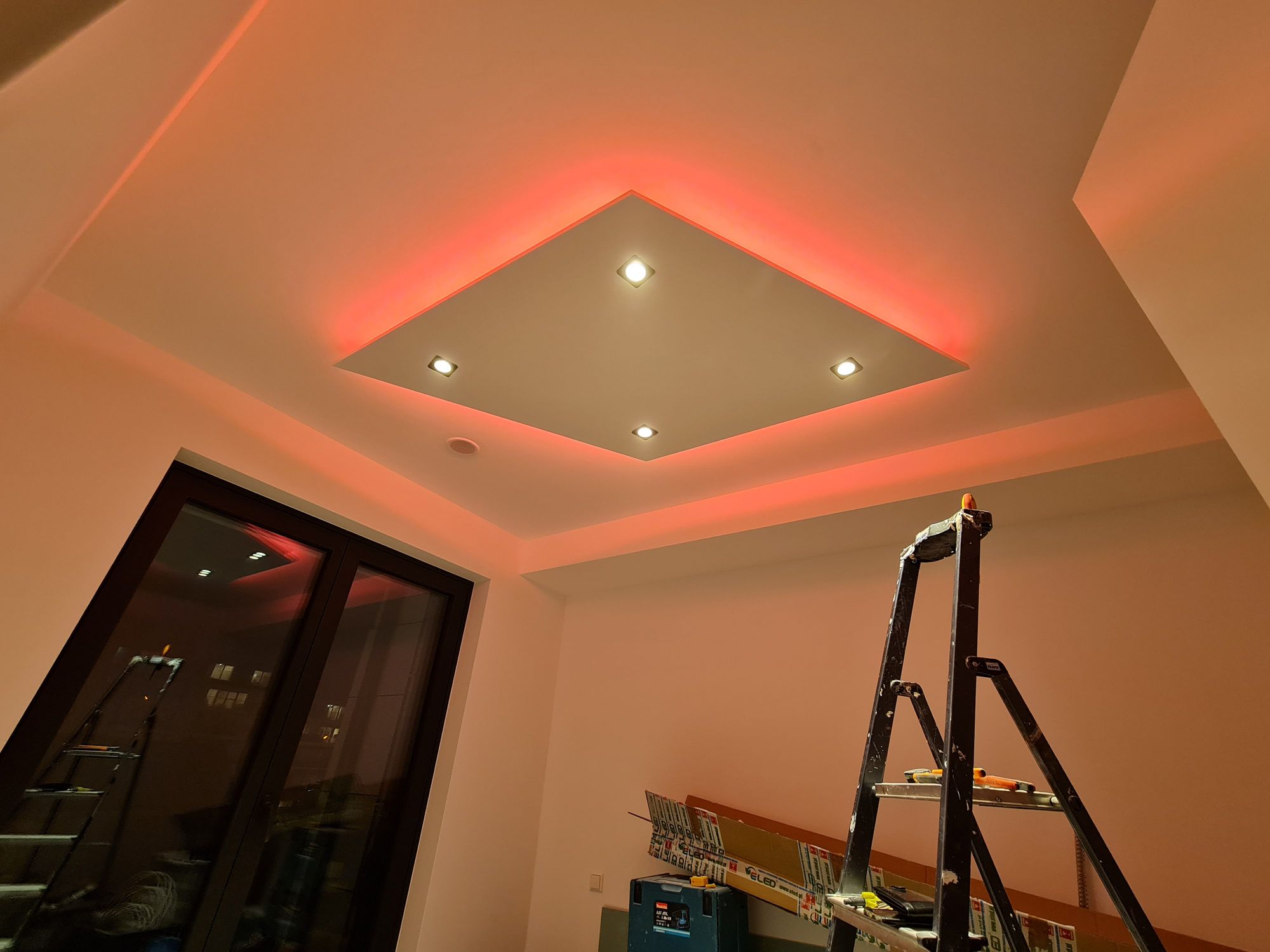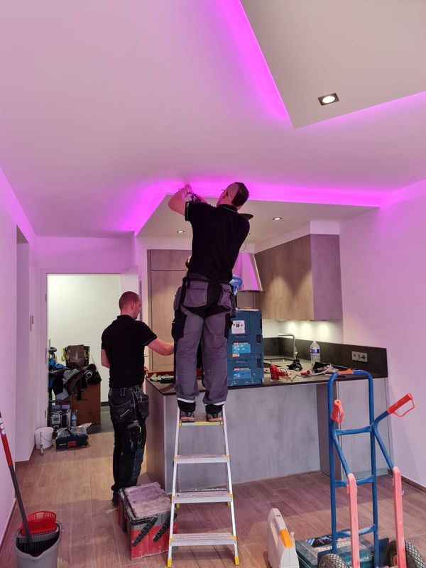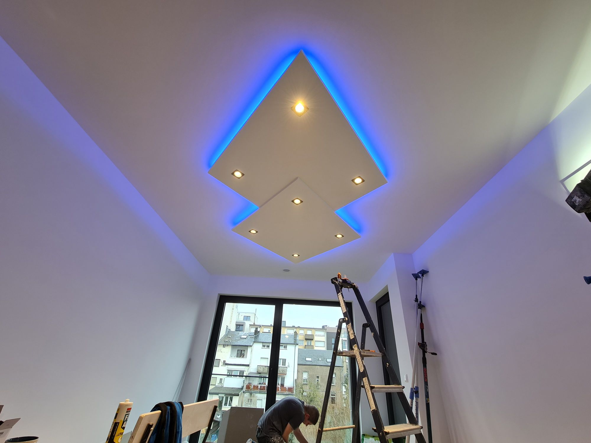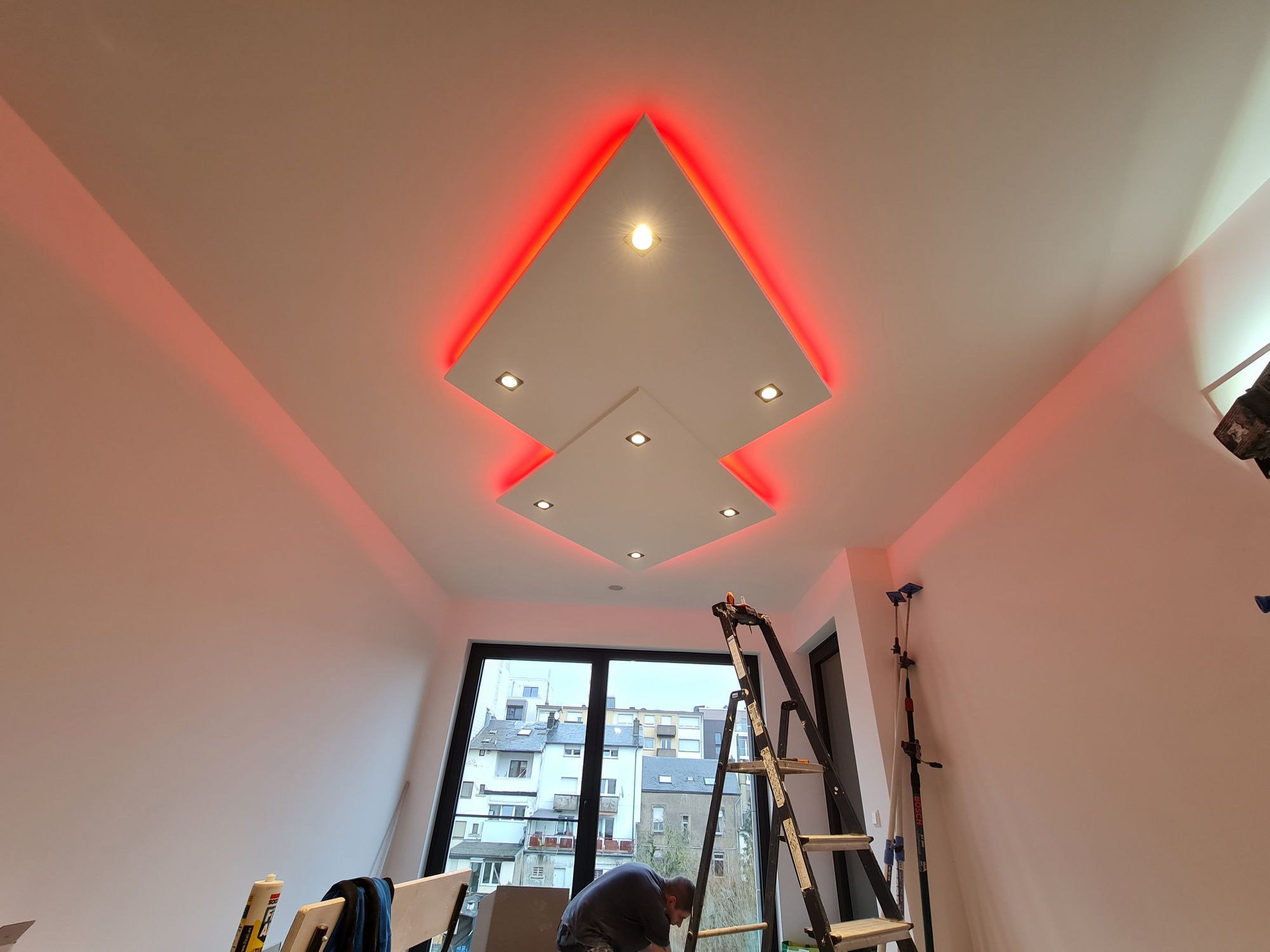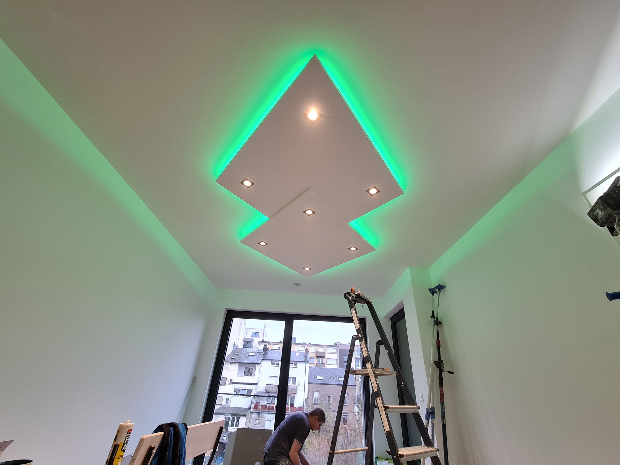 Installation of cardboard gypsum plastering + painting