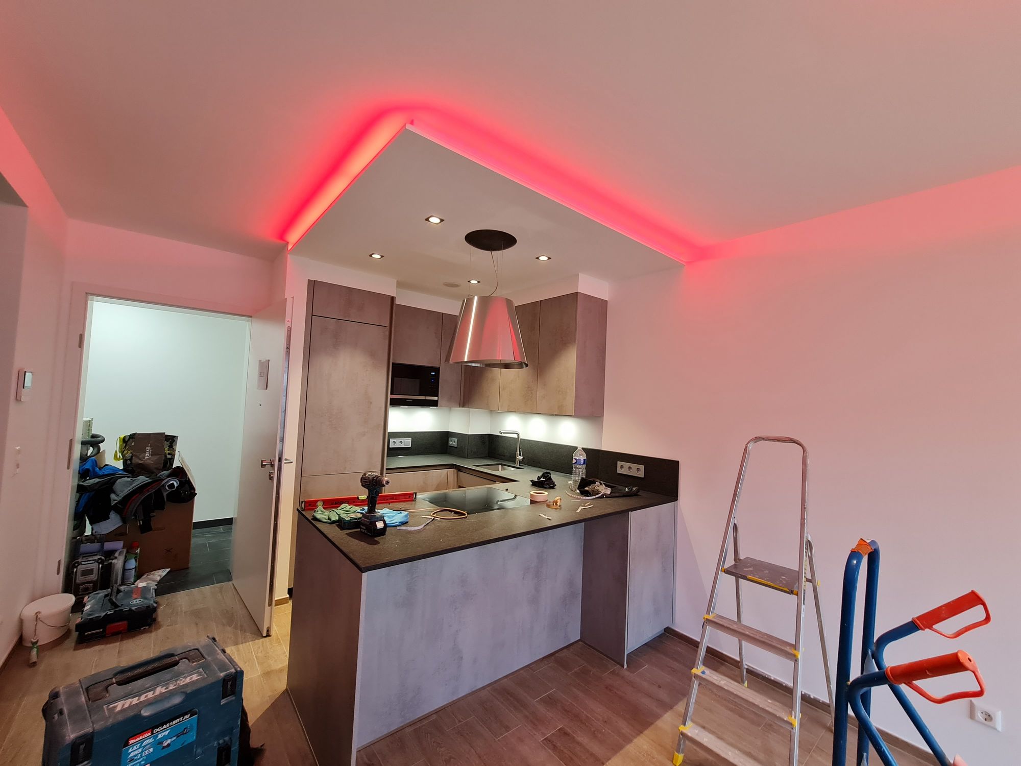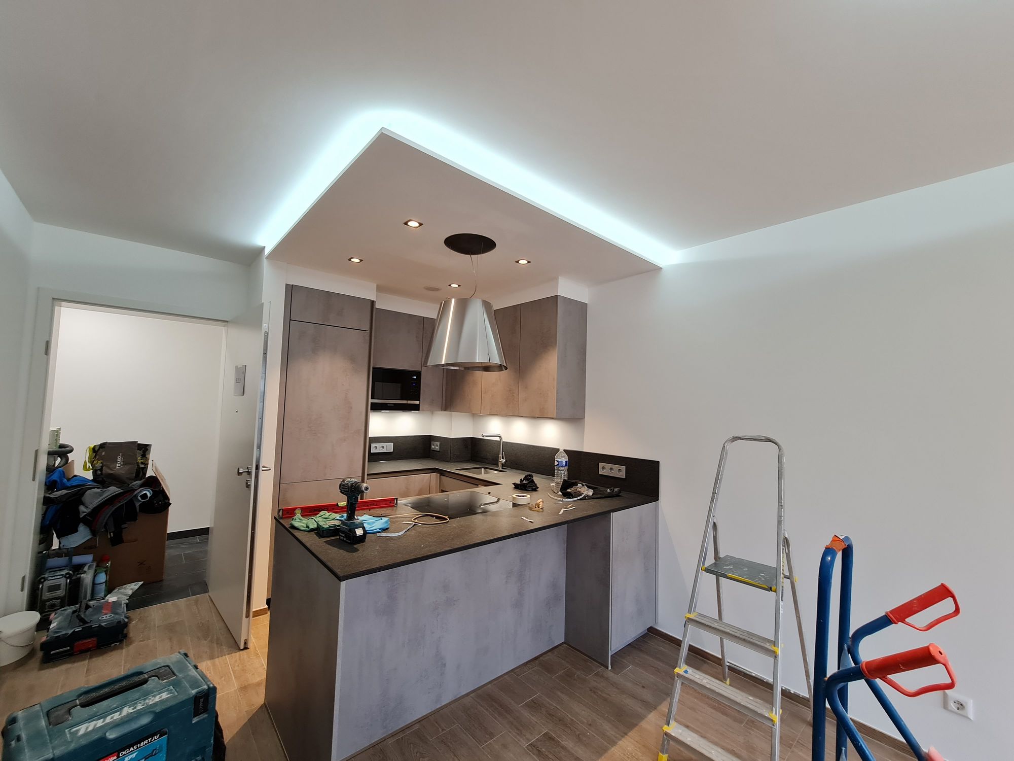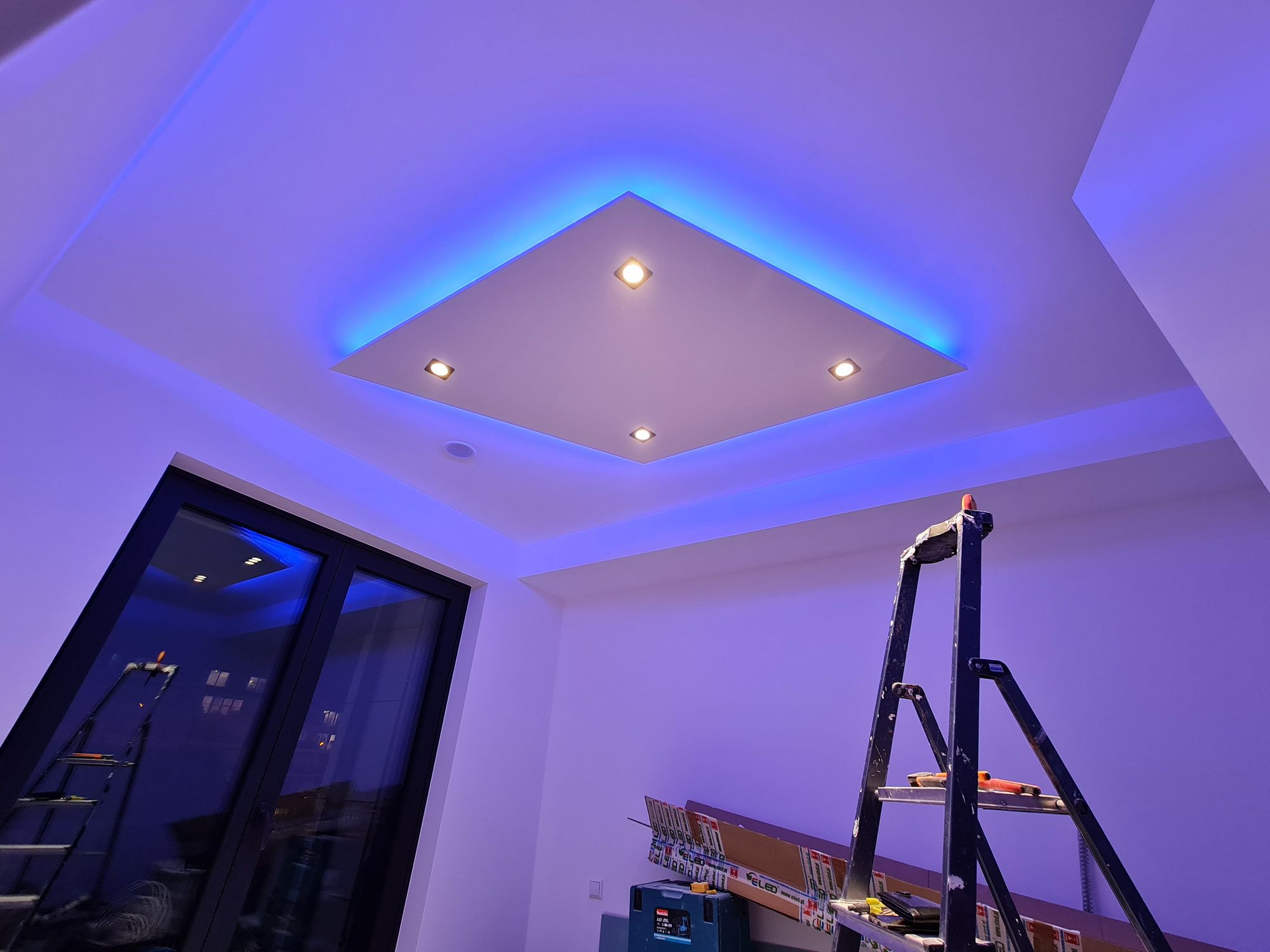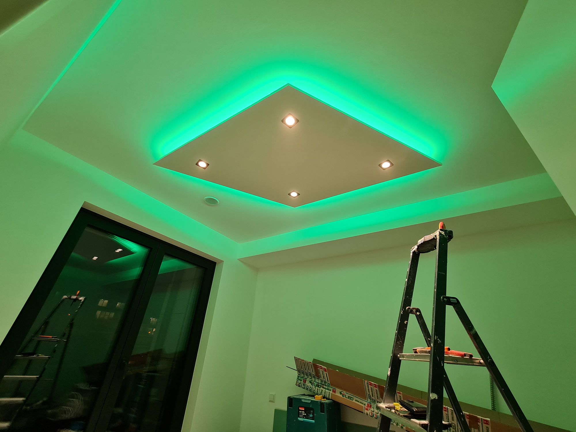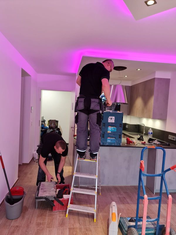 Installation of cardboard gypsum plastering + painting
